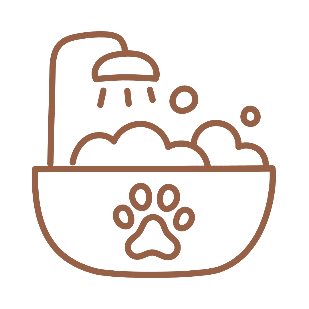A self-service grooming salon complete with raised wash stations, professional grade drying tools, and grooming tables.
